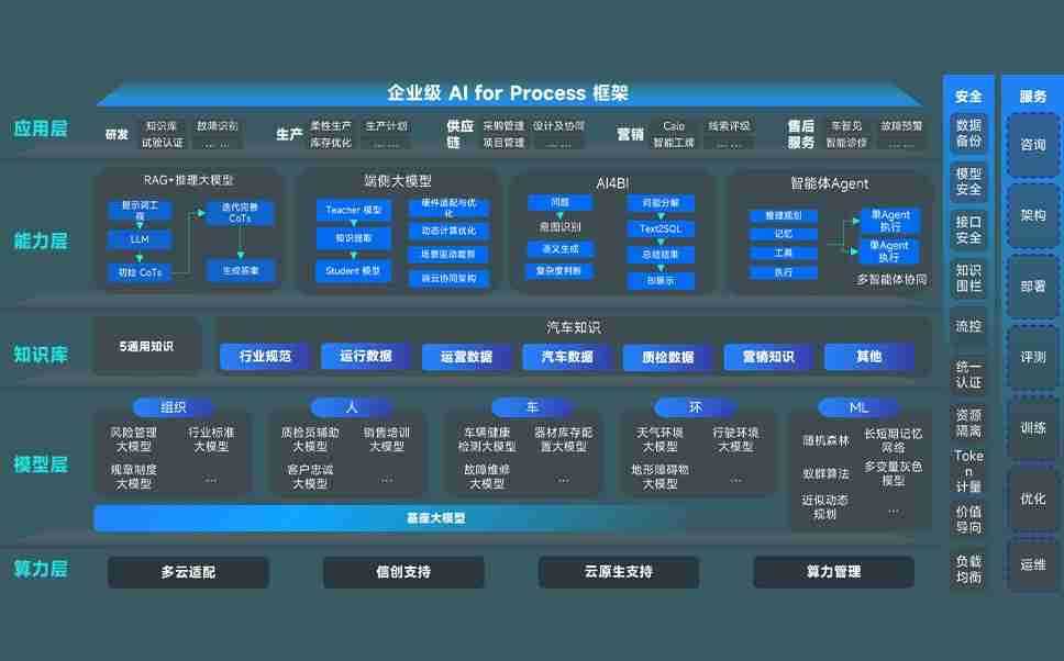 J9.COM问学智车解决方案是一套基于AI技术的汽车行业智能化系统,,覆盖从底层算力到顶层AI应用的全栈方案。。。。方案由算力层、、、、模型层和应用层组成:算力层,,方案支持多种一体机配置,,具备云端灵活部署、、多云适配以及动态优化计算资源的能力;模型层,,,J9.COM问学平台版提供了企业级AI应用一站式构建与管理平台,,,支持基于后训练强化技术的汽车企业专属模型的训练、、、评测和运营;应用层,,J9.COM问学DeepSeek版提供包括超级员工、、、智能招采、、、、智能营销、、、、智能客服、、、、AI for BI等一系列解决方案,,可助力汽车行业实现数字化转型,,,让管理更智能、、、响应更敏捷。。